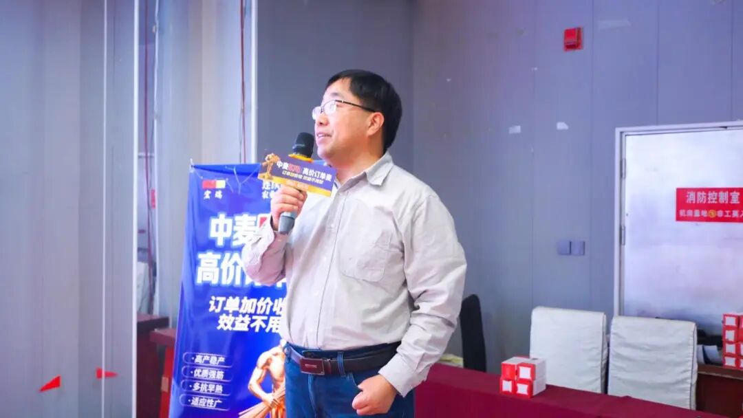 石家庄市天河宏业粮油贸易有限公司经理徐培发现场分享中麦578市场收购情况,对中麦578需求大、收购稳、价格优,市场一直供不应求。建立中麦578长期稳定的定向回收机制,让种植户种中麦 578不愁销路、不愁卖价,真正实现订单加价收、效益不用愁。