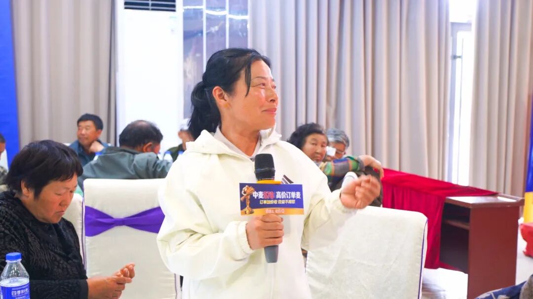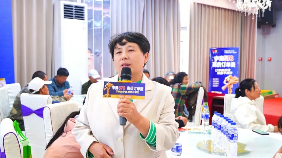 石家庄市天河宏业粮油贸易有限公司经理徐培发现场分享中麦578市场收购情况,对中麦578需求大、收购稳、价格优,市场一直供不应求。建立中麦578长期稳定的定向回收机制,让种植户种中麦 578不愁销路、不愁卖价,真正实现订单加价收、效益不用愁。